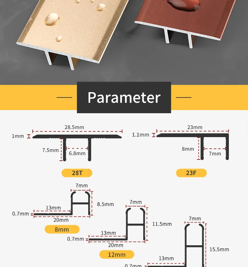 Sinriya Aluminum Flooring Strips Floor Strip Carpet Tile Aluminium T Universal Square Shape Shur In Baseboard Edge Transition XRY-PK